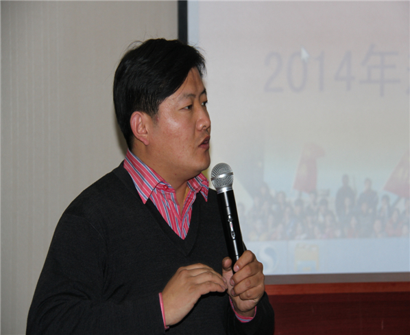 There are two stages in the meeting:the first at 08:00 a.m.,all the departments directors made summarization reports of 2013 respectively.The second one at 14:00p.m,